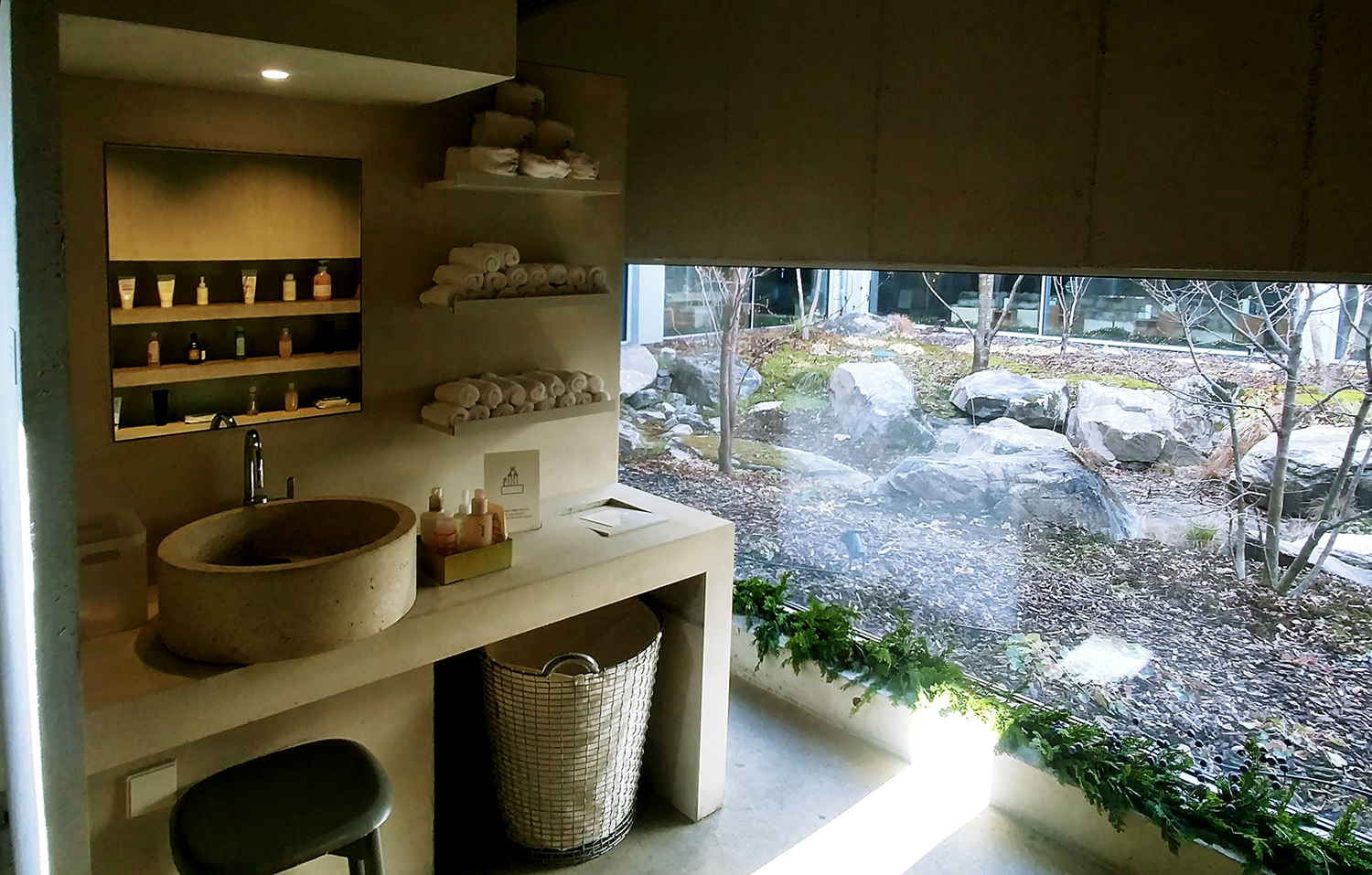 입구쪽에 제대로 세안하고 들어갈 수 있도록 별도 공간이 마련되어 있어요.