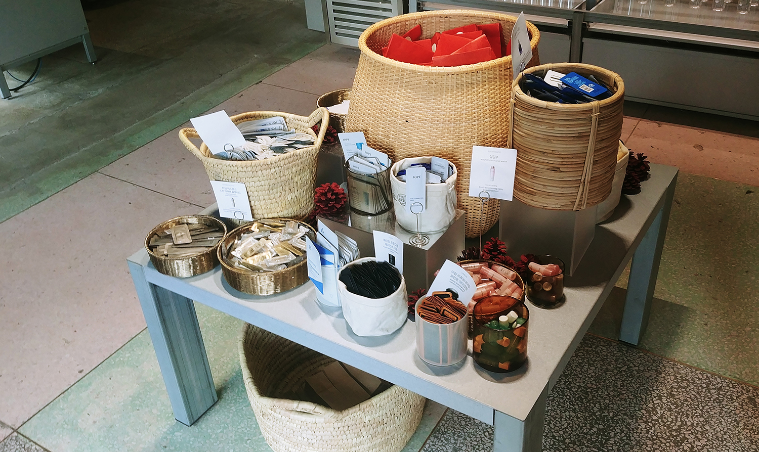 네추럴한 느낌으로 연출된 공간에 ㅋㅋ 브랜드 샘플들이 가득.