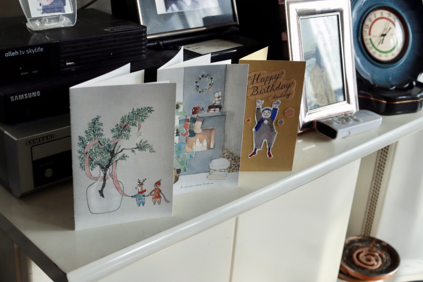 아부지가 작년 크리스마스 카드 2종 옆에 나란히 전시해 주셨다...