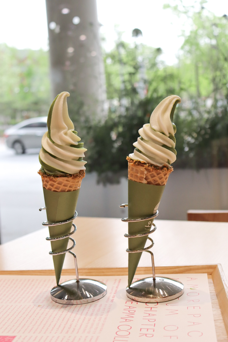 오설록에서 녹차 우유 서프트 아이스크림을 먹었네요