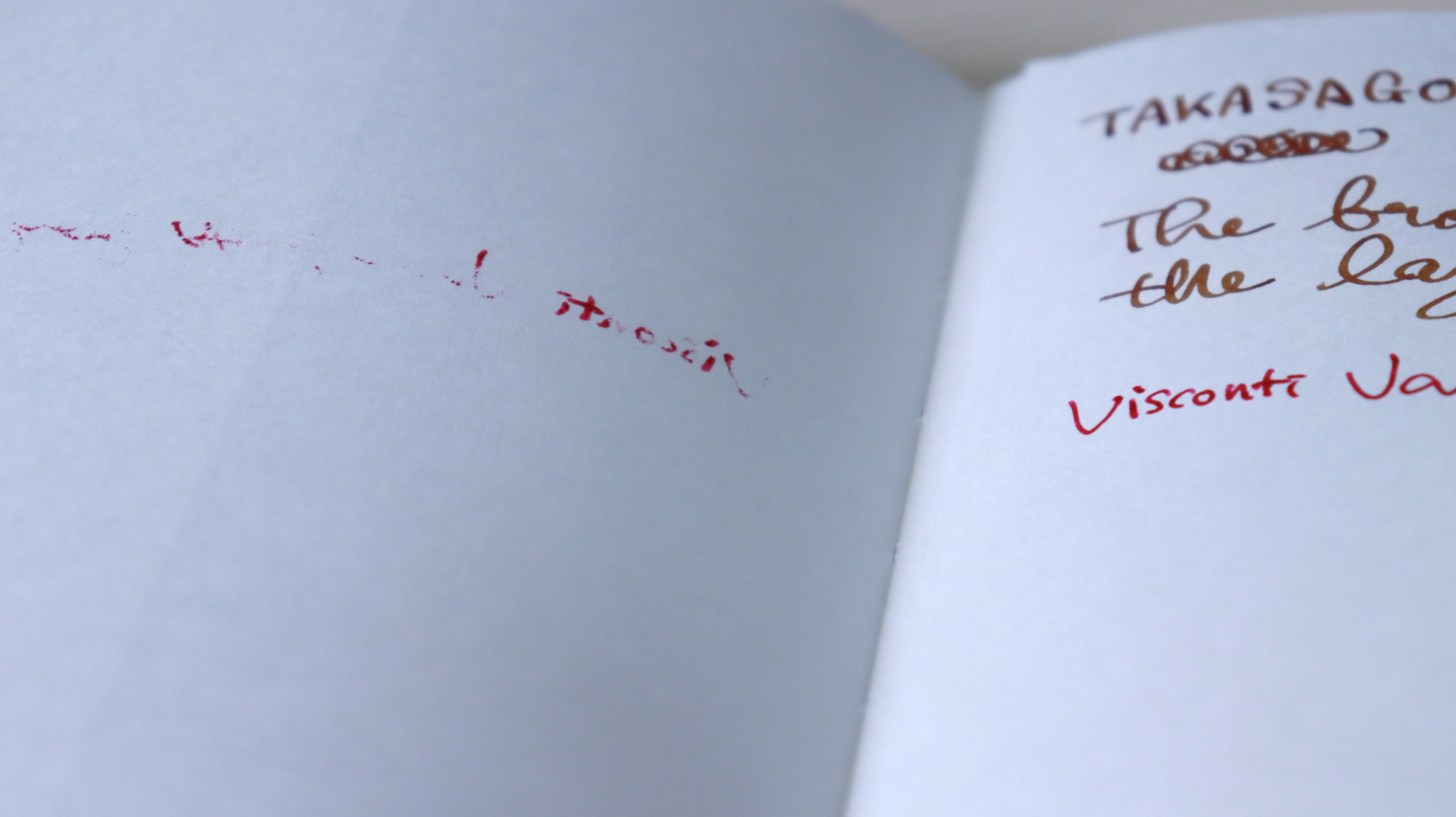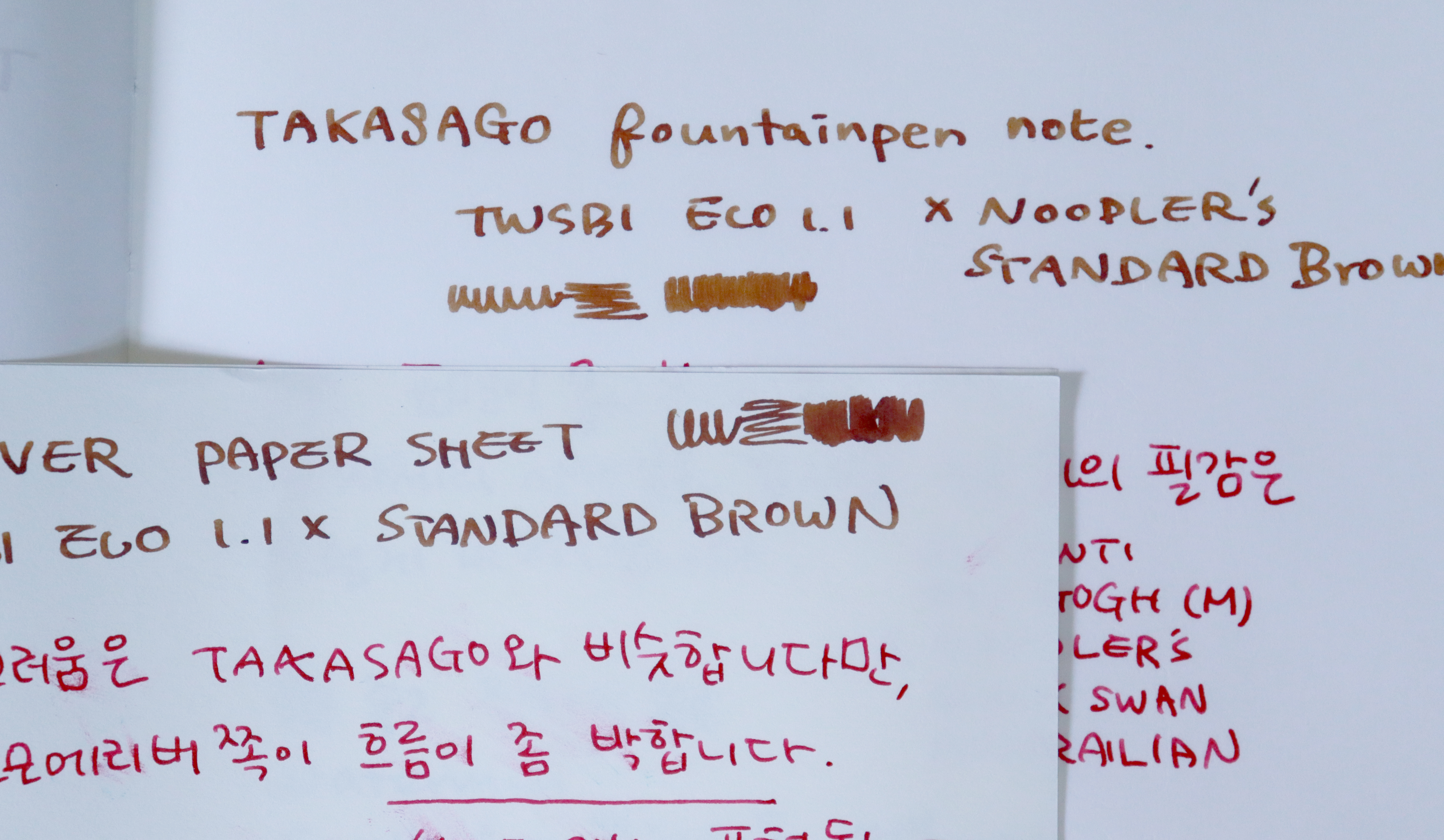 타카사고는 농담이 더 강하게 지는 편이고 잉크의 발색이 좀 화사합니다.