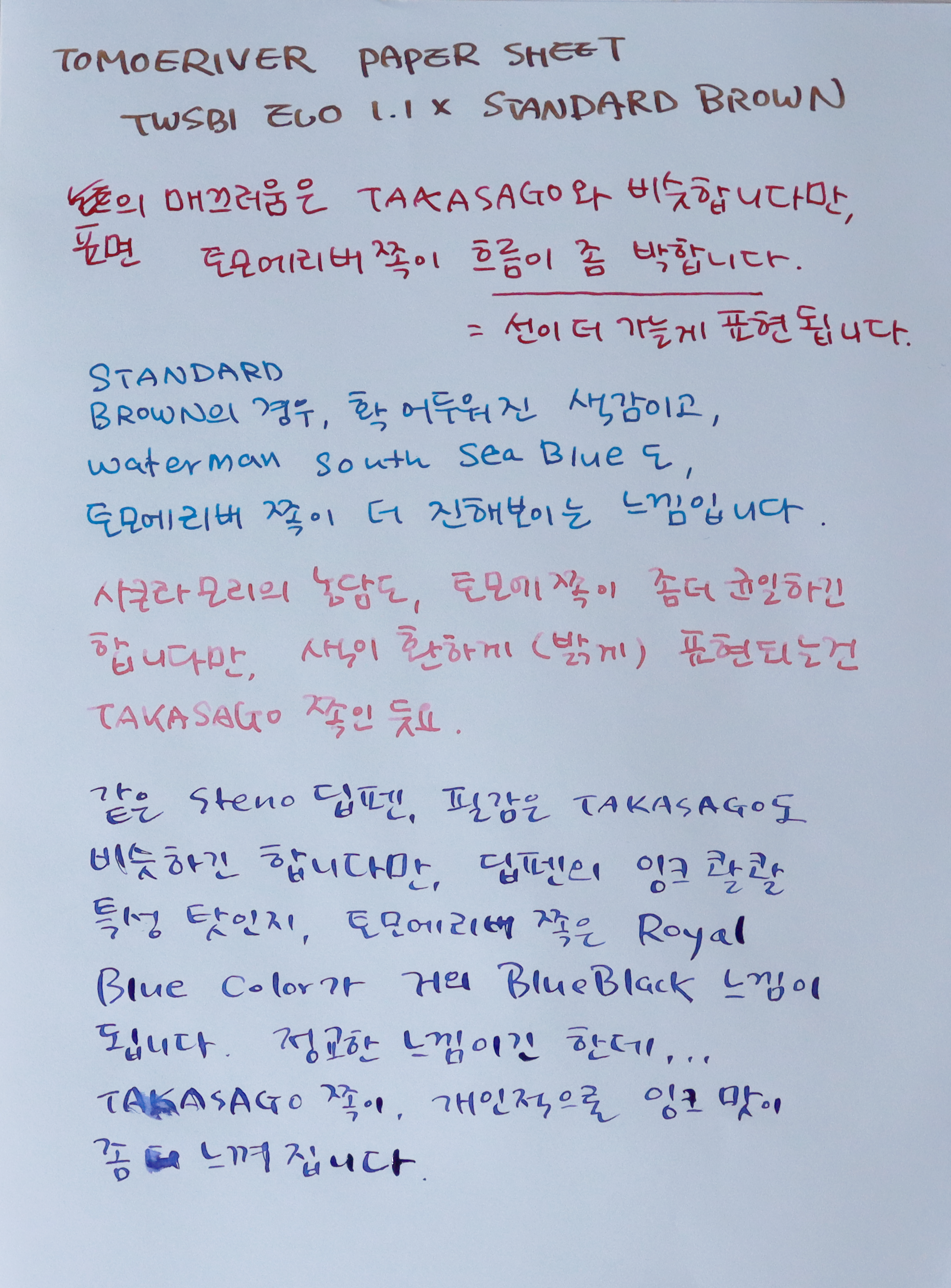 잉크 흐름 및 발색 면에서 차이가 좀 있었어요.