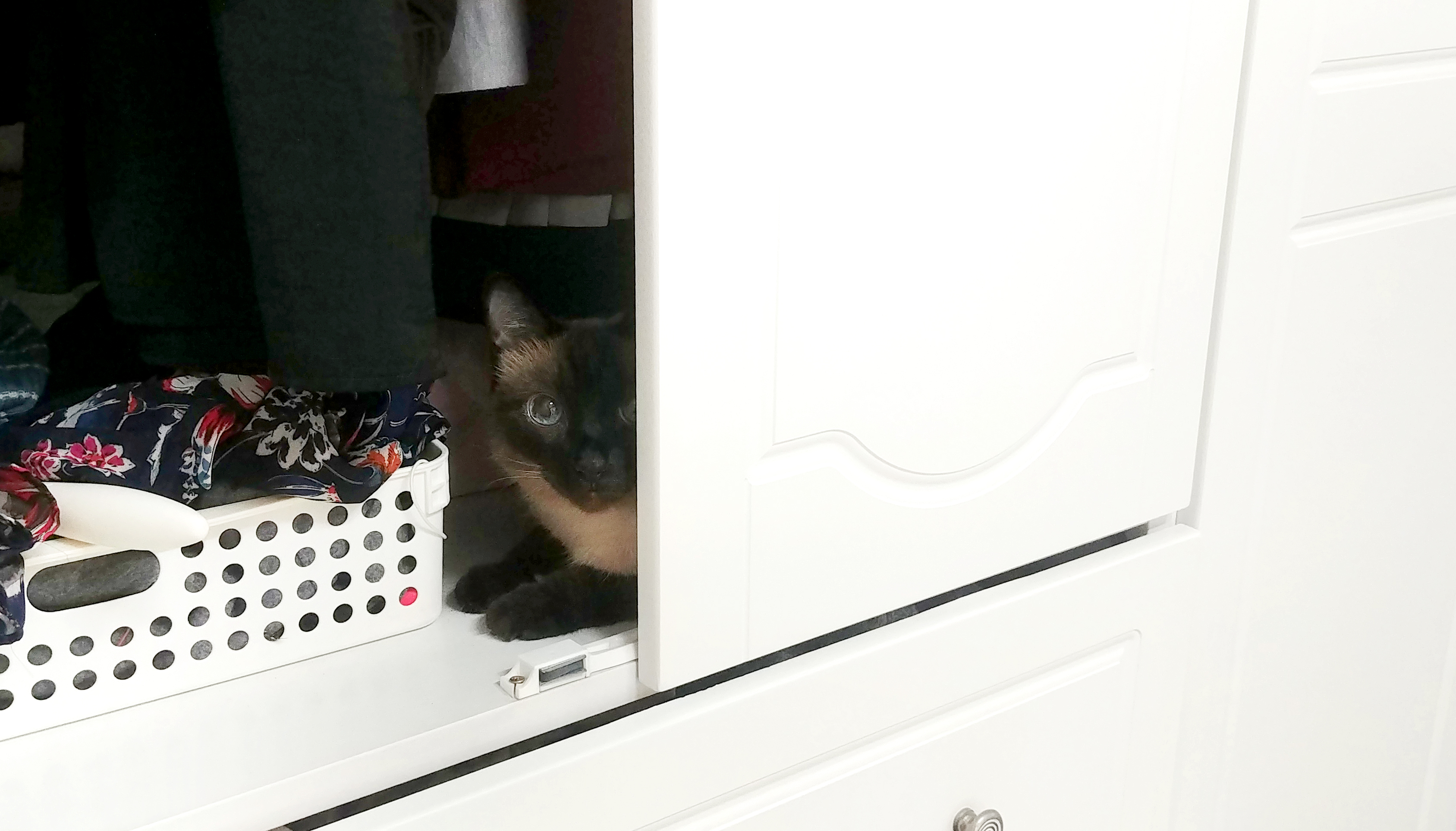 어느 틈에 옷장에 들어가 앉아 나갈 준비중인 나를 내다보고 있다...