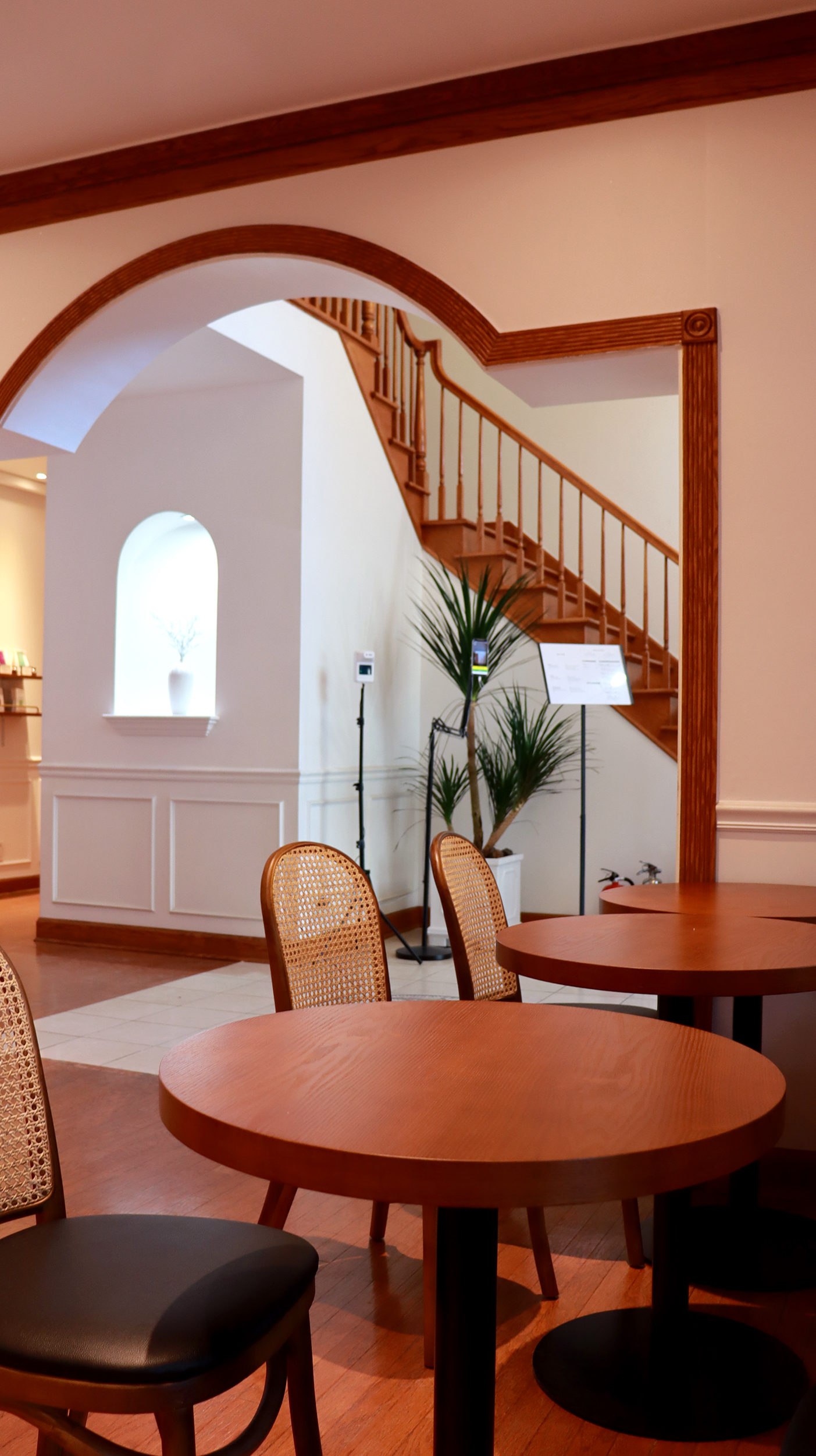저택 형태의 건물에, 깨끗한 화이트+체리우드의 모던 클래식한 인상이 상당히 좋았어요.