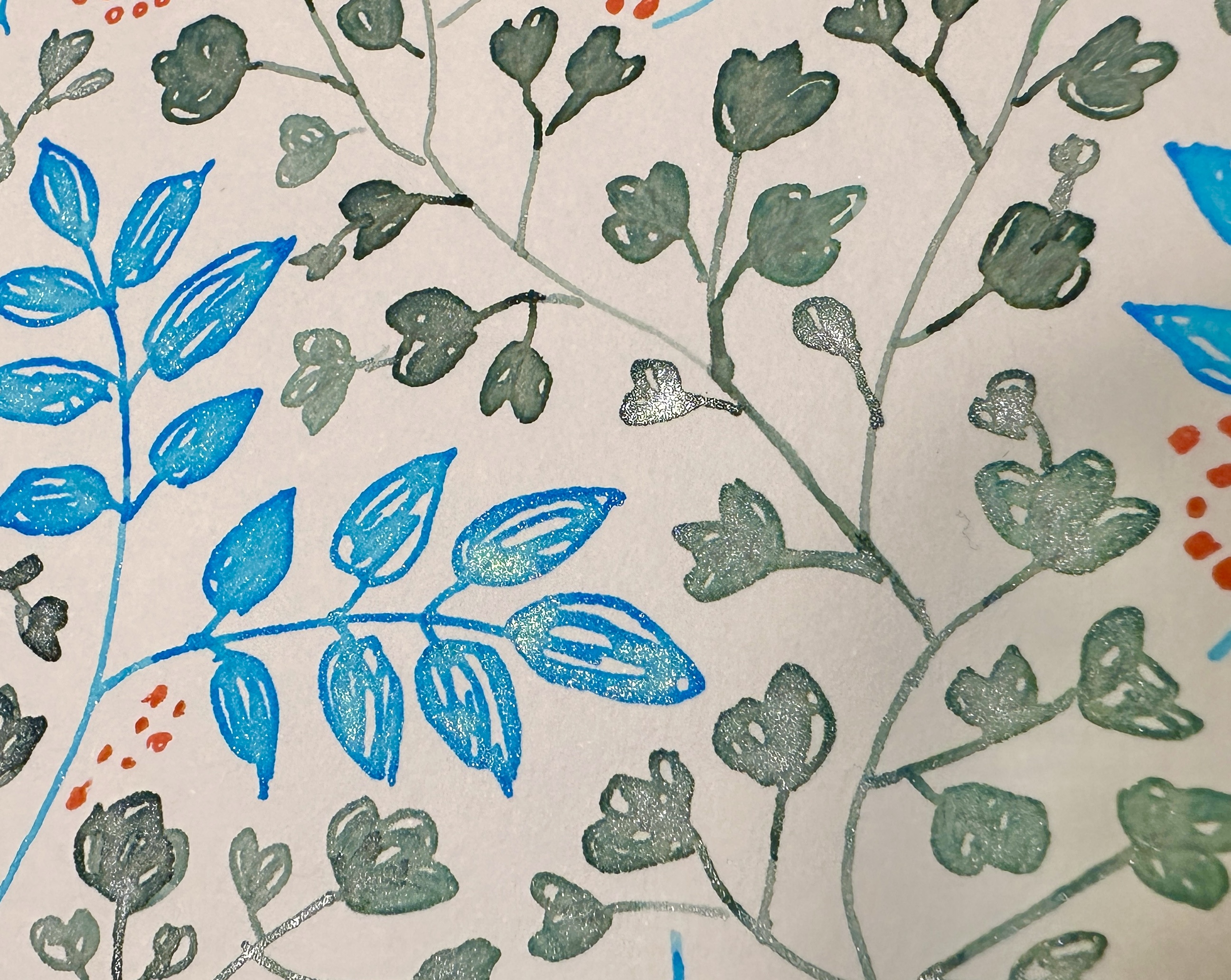 머큐리는 산뜻하면서도 발색력 좋은 하늘색에 금분이 들어가서 ... 뭐 이건 그냥 이쁘라고 만든 잉크네~ 싶구요.