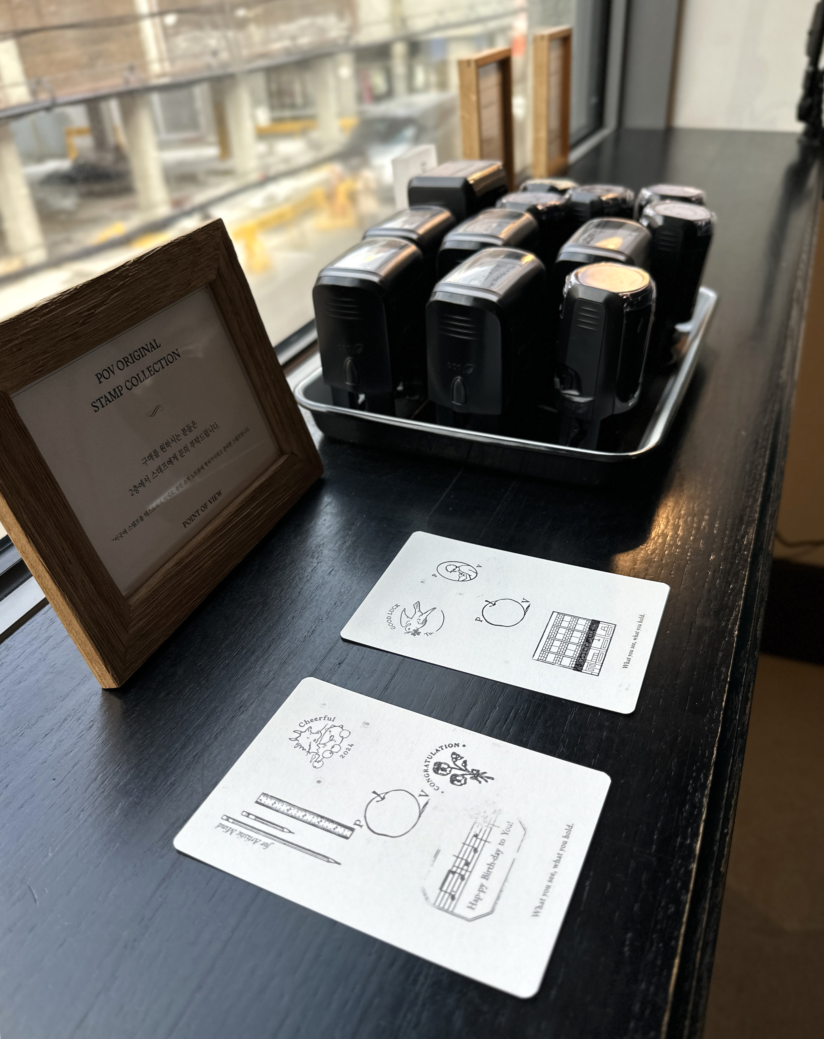빛이 들어치니 이것만으로도 예술입니다! 2층과 3층 사이 계단 참에 마련된, 포오뷰의 스탬프 체험... 캬아... 이것도 예술입니다