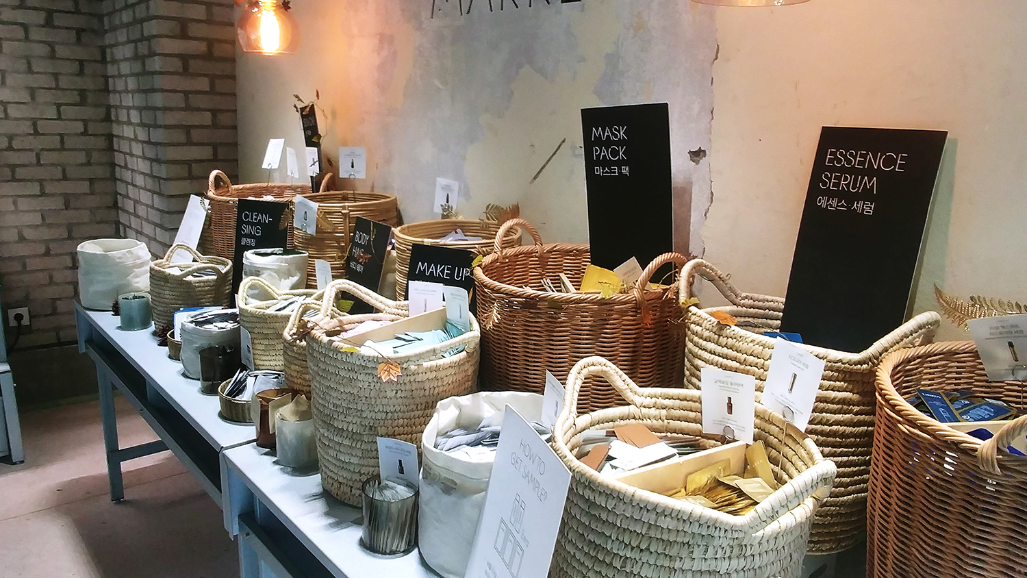 네추럴한 느낌으로 연출된 공간에 ㅋㅋ 브랜드 샘플들이 가득.