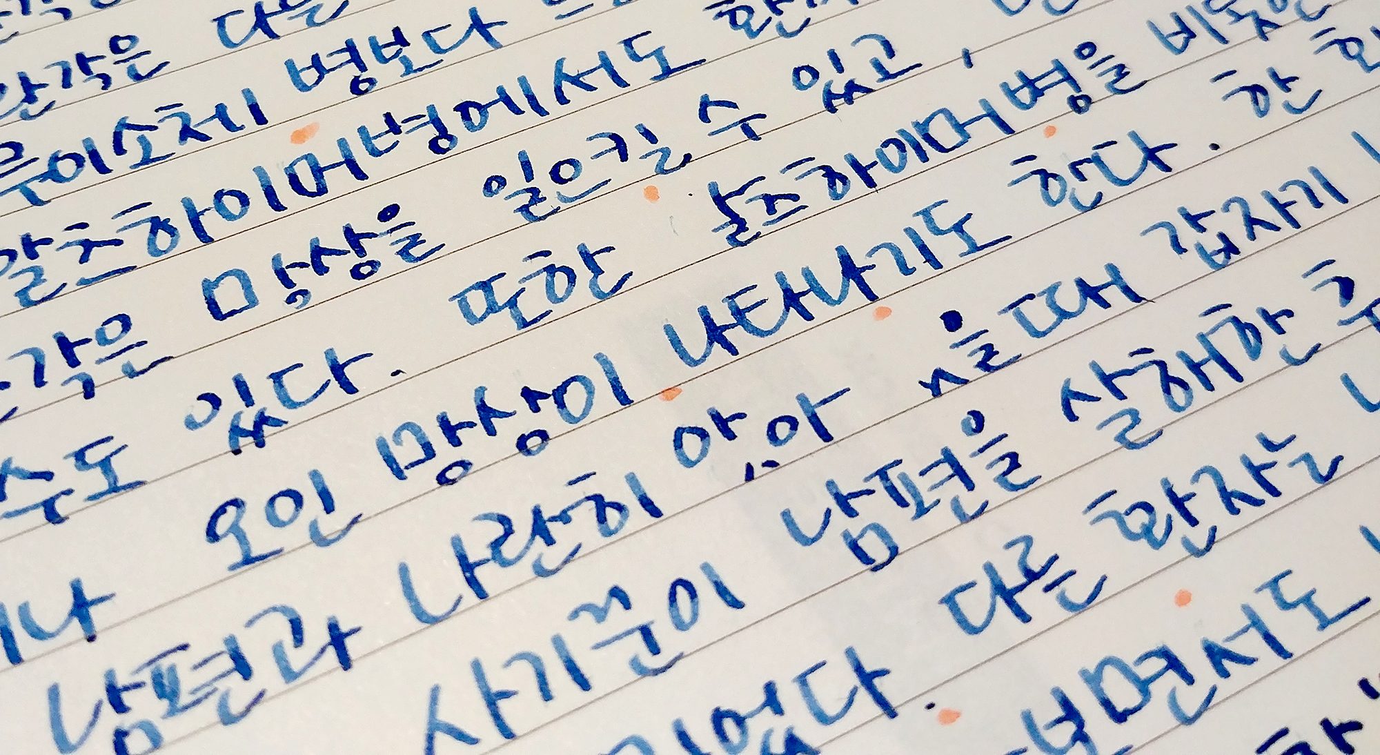 큉크의 흐름도 좋고 닙도 살짤 조절해놔서, 잉크는 꽤 콸콸 나오는 느낌이 있는데도, 헛발질은 나네요.