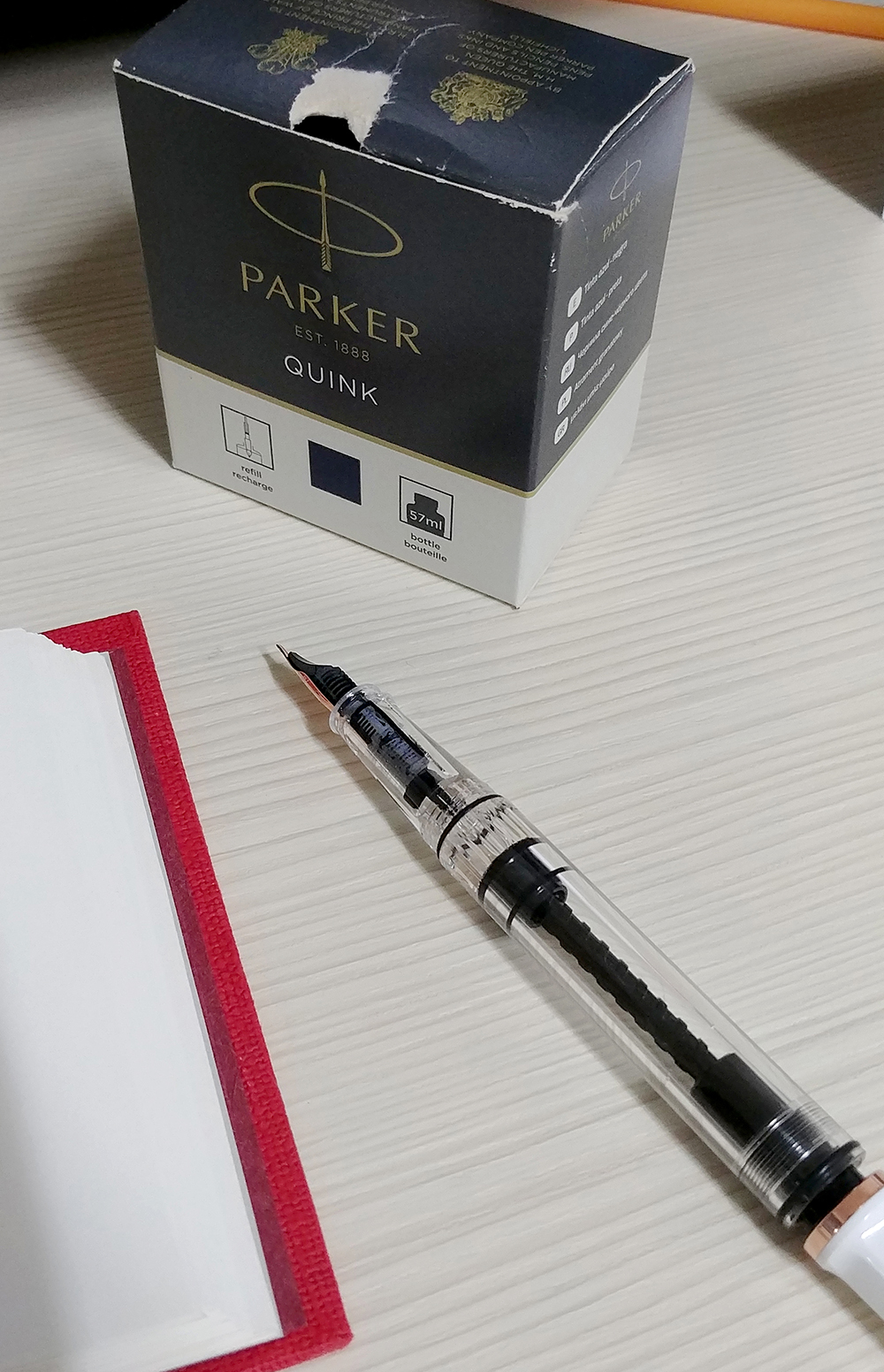 아깝지만 유야케를 비우고 닙까지 분해해 한 번 꼼꼼히 세척하고 본의 아니지만(?) 파커 큉크를 넣어줍니다.