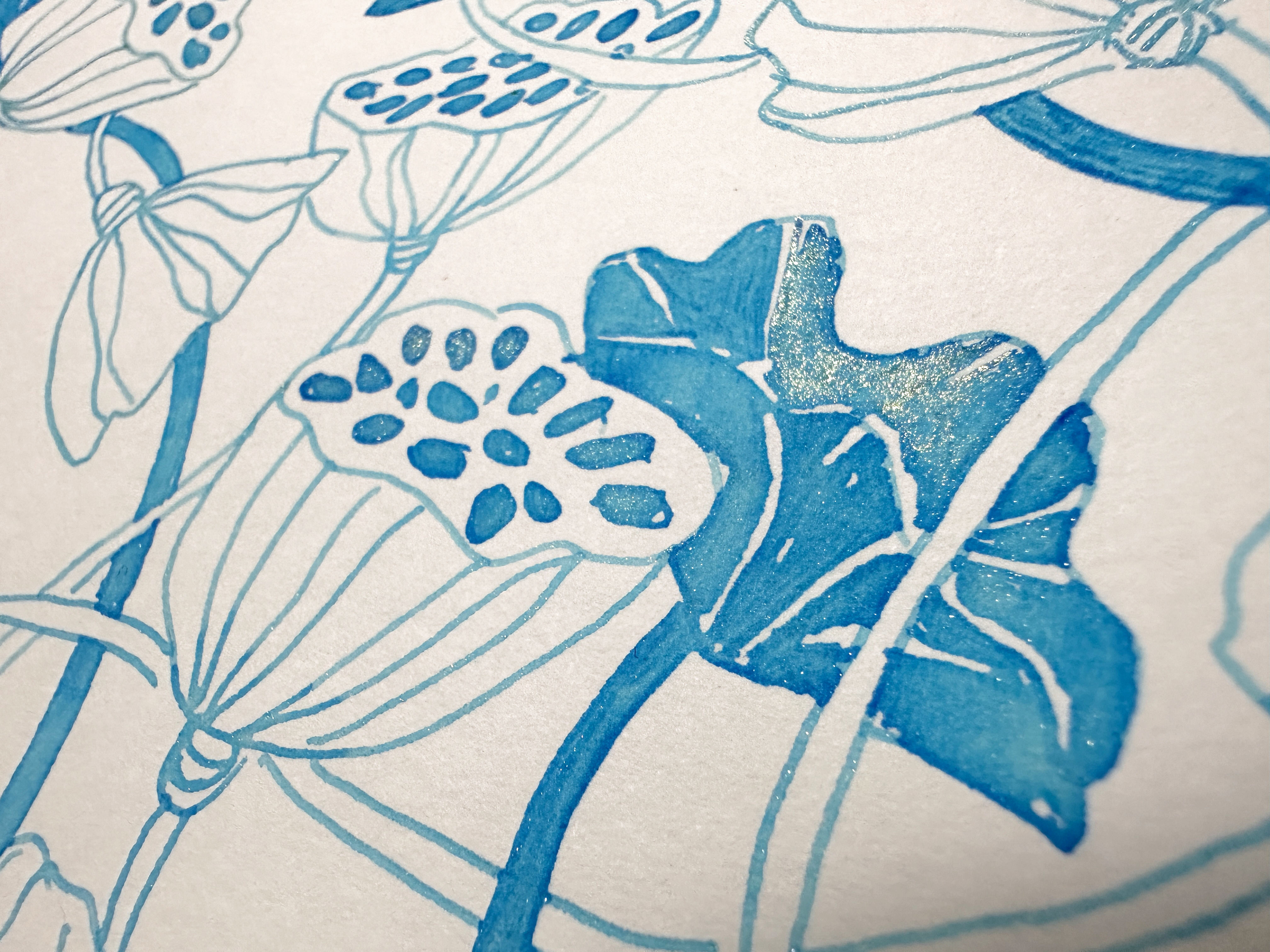 머큐리는 산뜻하면서도 발색력 좋은 하늘색에 금분이 들어가서 ... 뭐 이건 그냥 이쁘라고 만든 잉크네~ 싶구요.