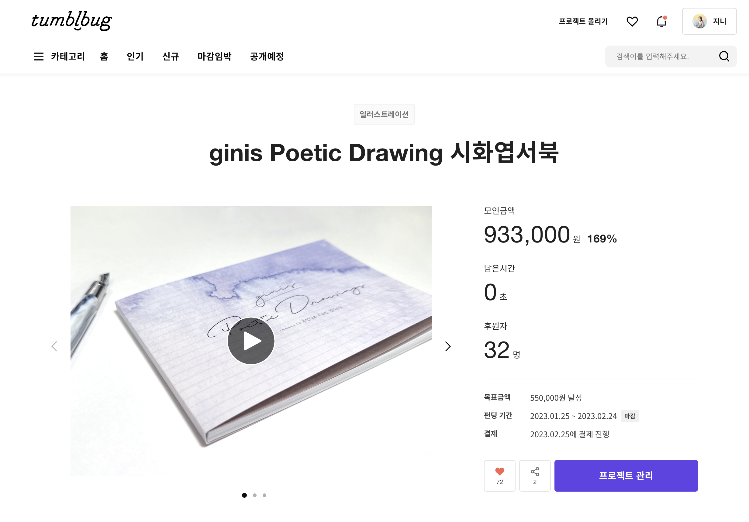 텀블벅 펀딩 성공했어요~
