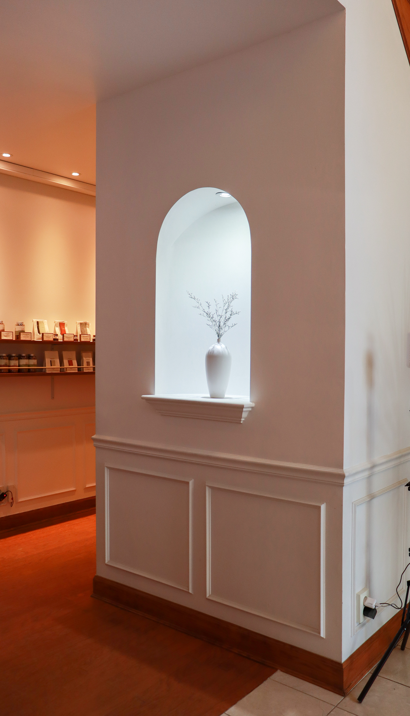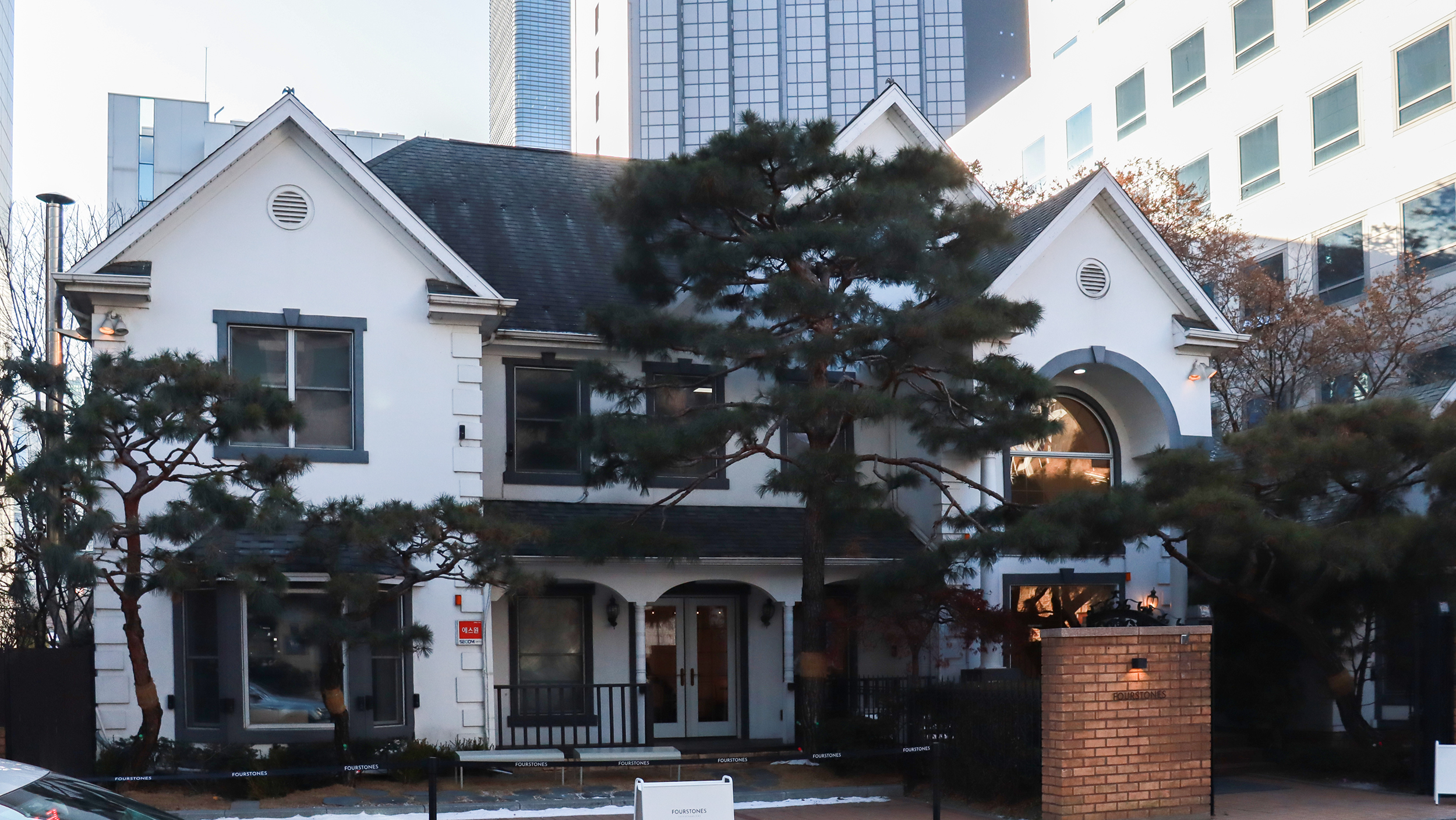 저택 형태의 건물에, 깨끗한 화이트+체리우드의 모던 클래식한 인상이 상당히 좋았어요.