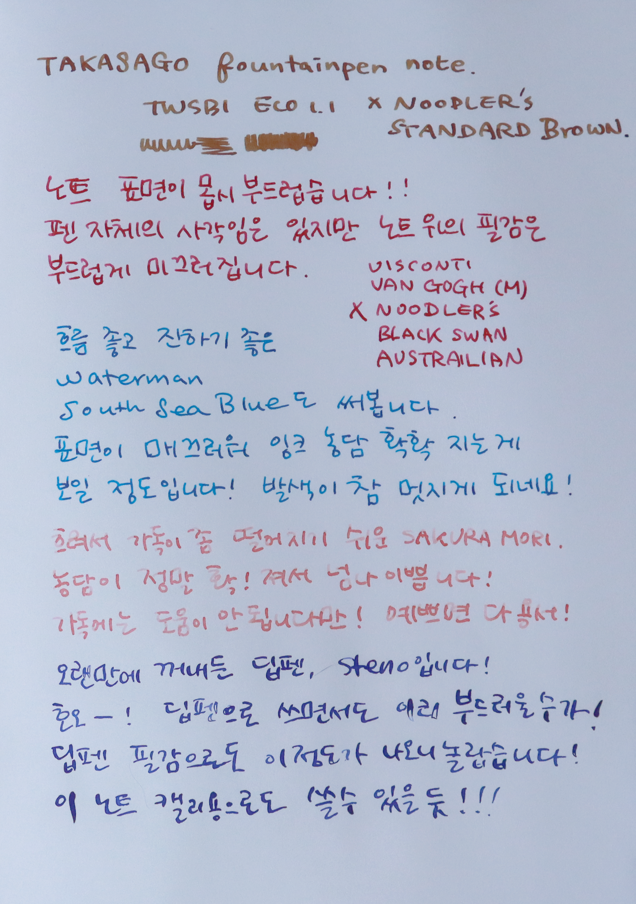 잉크 흐름 및 발색 면에서 차이가 좀 있었어요.